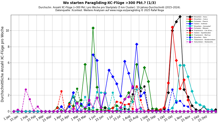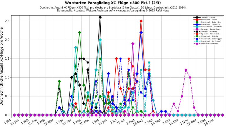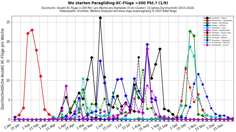 Wo starten Paragliding-XC-Flüge mit hoher Punktzahl?